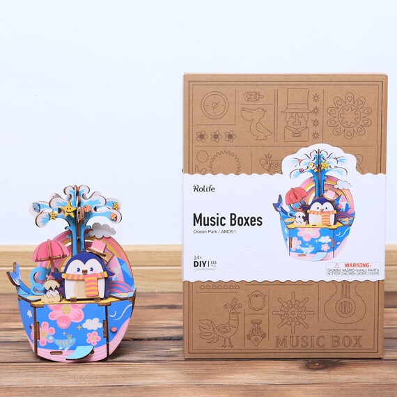 Ocean Park Music Box 3d Wooden Puzzle Diy Kit Wooden Model Etsy De